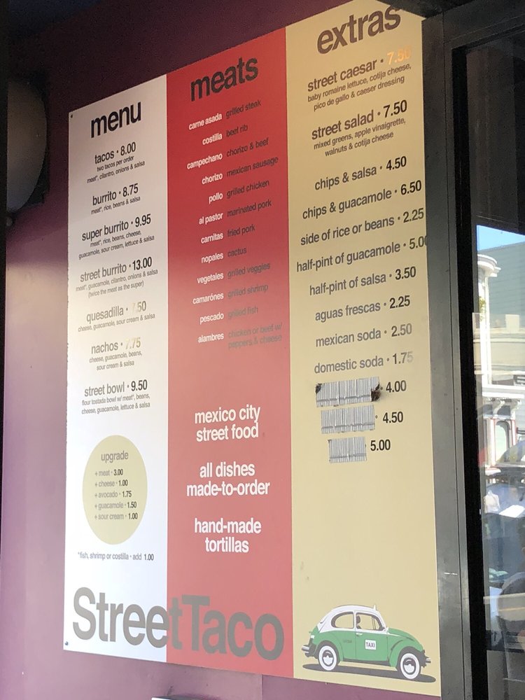 If you're looking for a casual dining experience with a wide range of Mexican street food options, look no further than Street Taco on 1607 Haight St in San Francisco. Offering delivery, takeout, and vegan options, this restaurant caters to a diverse array of preferences. The menu features classic dishes like tacos, burritos, and quesadillas, as well as sides like chips and salsa and guacamole. Customers rave about the flavorful salsa, fresh ingredients, and generous portion sizes. The ambiance is described as fast-casual, perfect for a quick and delicious meal. With friendly staff and affordable prices, Street Taco has become a local favorite for good reason. Whether you're craving traditional carne asada tacos or a loaded burrito, Street Taco delivers on taste and value.